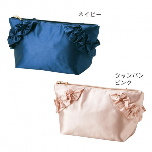 名入れ可 フェミニンで華やかなマチありポーチ 2色