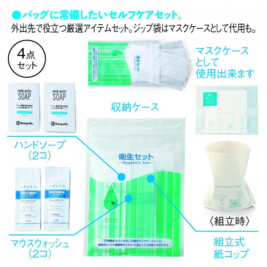 バッグに常備したいセルフケアセット。 外出先で役立つ厳選アイテムセット。 ジップ袋はマスクケースとして代用も。 日本製 入数 120 サイズ 収納ケース:200×140×10mm  組立式紙コップ:95×95mm  マウスウォッシュ:130×50mm  ハンドソープ:80×50mm 素材 収納ケース:バイオマ…