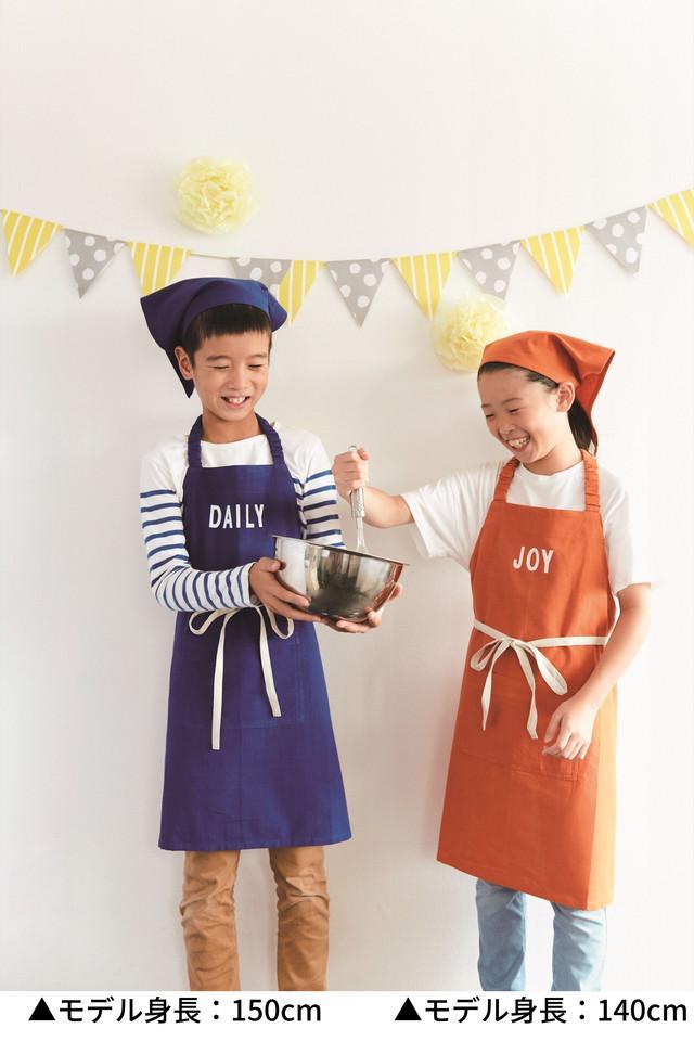 ノート キッズエプロン 【ORANGE・YELLOW・BLUE】 日常使いのカジュアルエプロンシリーズにキッズタイプが登場! ゴム使用のバンダナと巾着がセットになった3点セットでとてもお得! 対象範囲の目安は130㎝から155㎝です。 お子様とお料理する際や、学校での調理実習にもおすすめです。 ノートシリーズはシンプルなデザインで 胸元の英単語がアクセントになっています。 ●サイズ 68×70cm …
