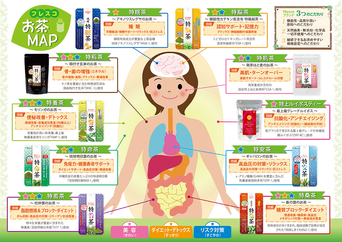 ①健康美容事業: 商社としてサプリ・食品や化粧品の原料や商品の卸・販売、OEM受託をメインとしています。また一部、メーカーとして、自社専売の原料の製造加工販売も行っています。