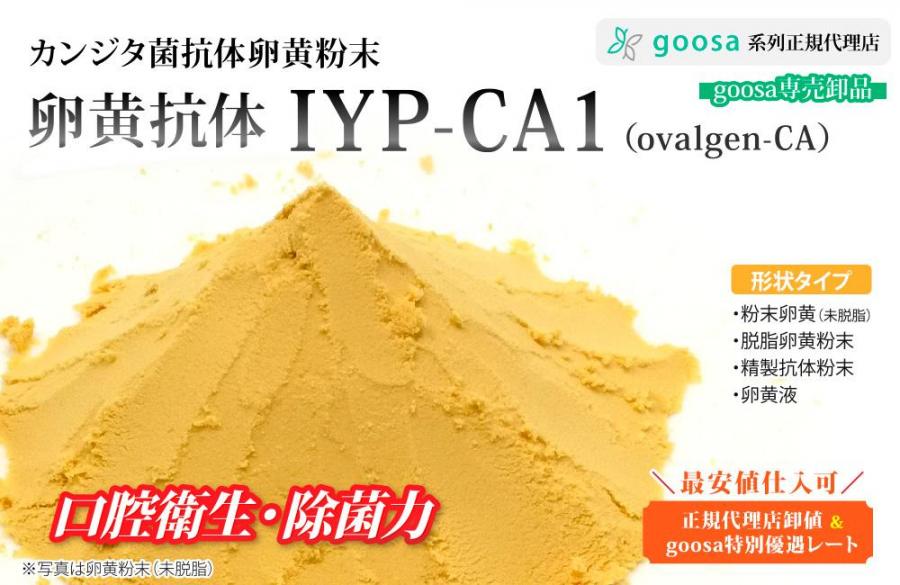 卵黄抗体IgYは、ニワトリが持つ「身を守る力」を利用した自然由来の「機能性卵黄素材」です。動物は、体内に侵入するウイルスやばい菌などから身を守る「機能性たんぱく質」(=抗体)を体内で作り出すことができ、このたんぱく質を卵に移すことで子供を守っています。卵黄抗体IgYは、この「卵に機能性たんぱく質を含ませて子供を守る」という仕組みを利用して、機能性たんぱく質が移行した卵を特殊技術で製造することでできた新しい素材です。 この卵黄抗体を含む食品原料「IYP(orvalgen®)」には4つの原料形態があり、機能性食品や化粧品等様々な製品へお使いいただける原料素材です。また、卵黄抗体の機能にも複数の種類があり、 IYP-DC1は虫歯菌、IYP-PG1は歯周病菌に働きかける機能をもっています。