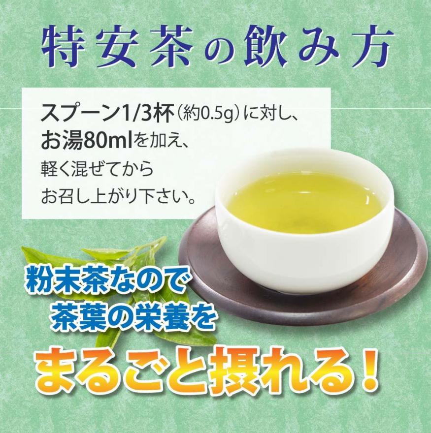 本商品スプーン1/3杯(約0.5g)に対し、お湯80ccを加え、軽く混ぜてからお飲みください。
