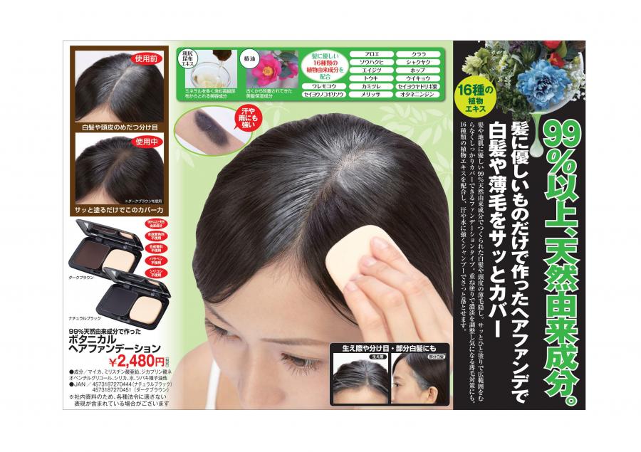 パフにファンデーションを馴染ませ、気になる白髪やうっすら透けて目立つ地肌にはたきこむようにご使用ください。徐々に馴染ませると自然な仕上がりになります。