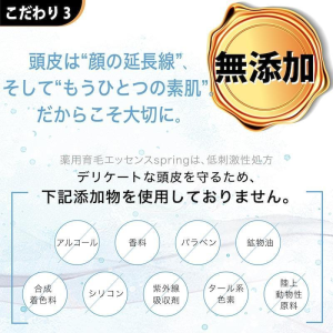 特許成分配合【ノンアルコール】薬用育毛エッセンスSPRING 【医薬部外品】男女兼用 国産〈1本/120ml〉