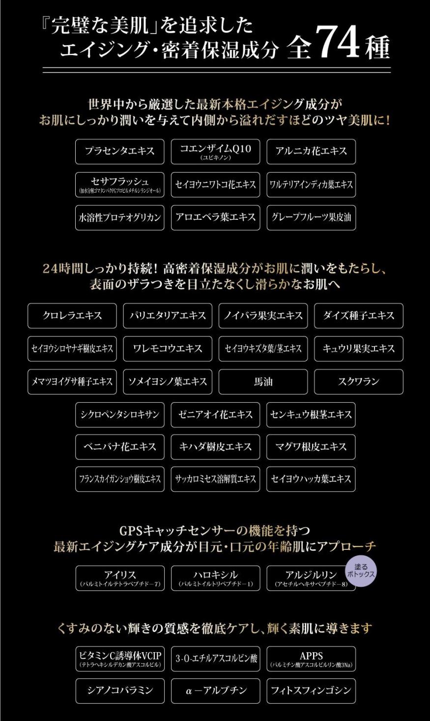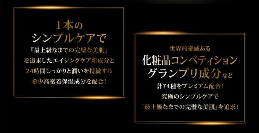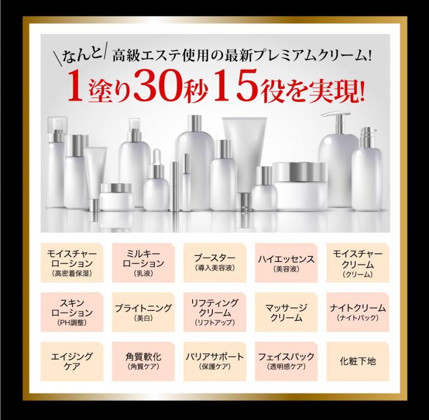 世界最大の化粧品展で金賞を受賞したエイジングケア成分を配合した15役の高級オールインワンクリーム。豪華美容74成分が角質層までしっかり浸透し、乾燥に負けないプレミアムな美肌体験を実現。たった30秒のシンプルケアで、年齢肌と戦うすべての女性たちをしっかりとサポートします。