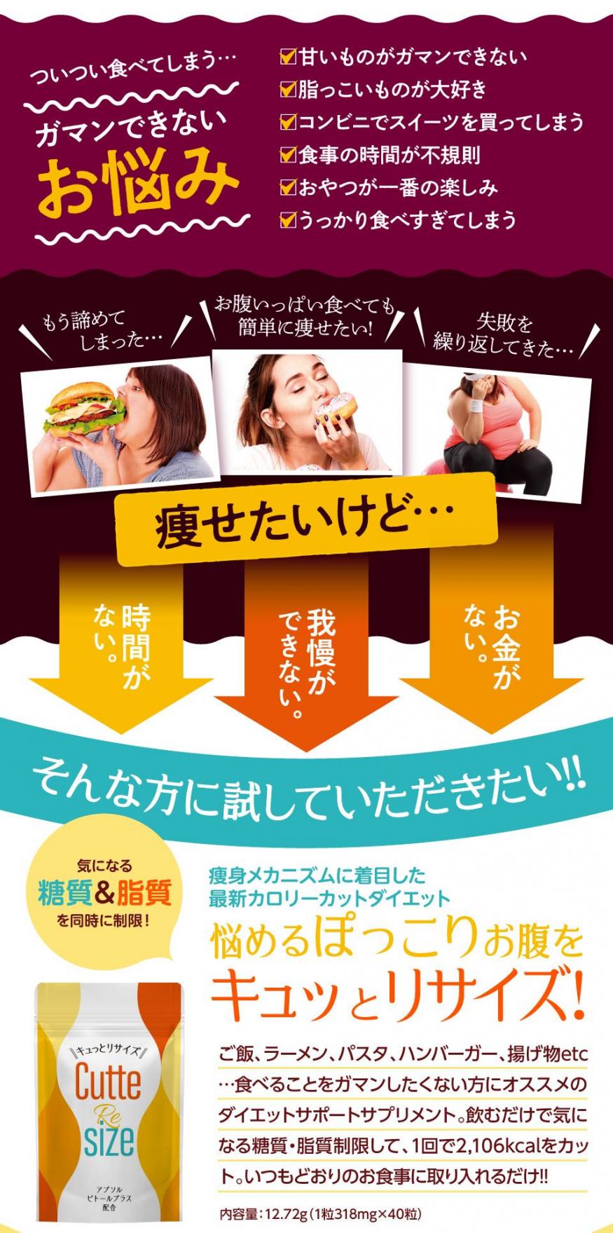 悩めるぽっこりお腹をキュッとリサイズ!食べることをガマンしたくない方にオススメのダイエットサポートサプリメント。