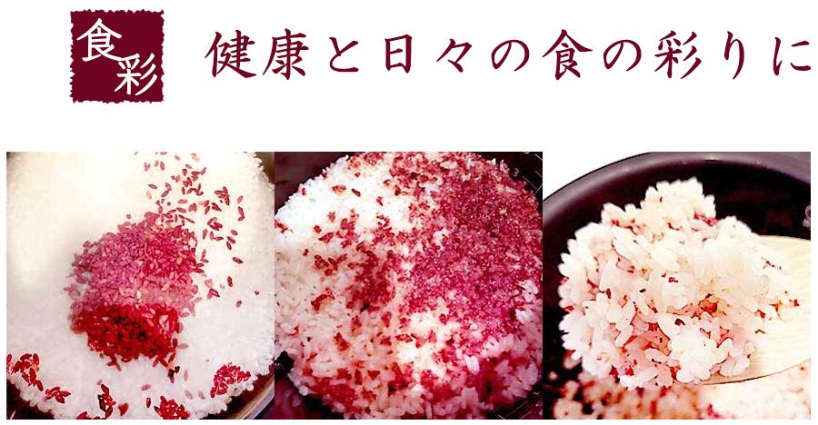 ●研いだお米2合に本品大さじ1杯(約10g)を加え炊飯してください。薄紅色のご飯が炊けます。