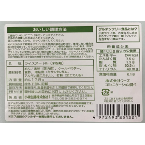 米粉(国内産)、ケールパウダー、食酢、増粘剤(キサンタンガム、アルギン酸エステル)、打粉(加工でん粉)