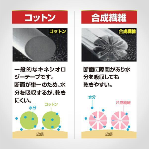 合成繊維は生地に隙間があるため、速乾性に優れています。水分で濡れた不快な状態を軽減します。シャワーやプールでもはがれにくいです。