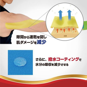 合成繊維は生地に隙間があるため、速乾性に優れています。水分で濡れた不快な状態を軽減します。シャワーやプールでもはがれにくいです。
