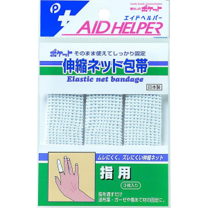 日本製 ムレにくくズレにくい 指用伸縮ネット包帯 3枚入り
