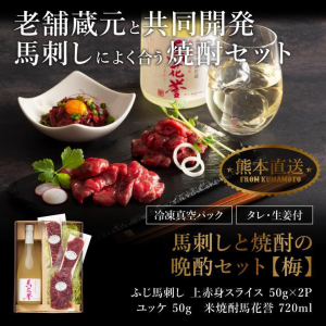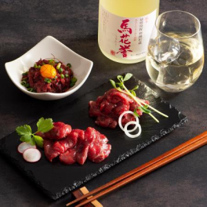 本格米焼酎「馬花誉」をお供に サシの甘みと馬肉の旨み 3~4人前セット