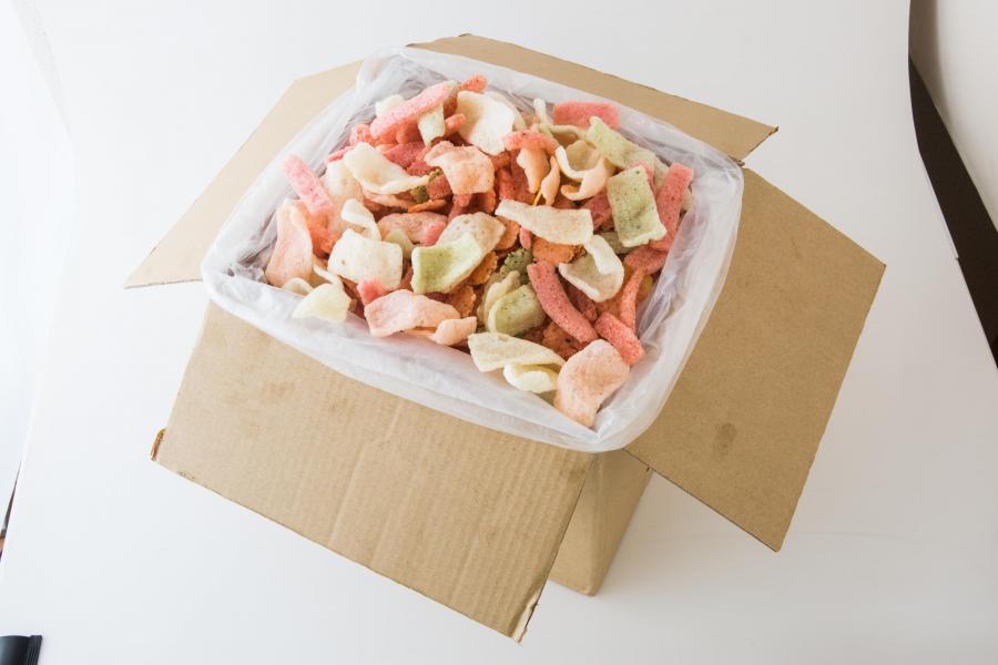 えびせんべいで有名な愛知県知多半島の「鯛祭り広場」の海鮮せんべいの規格外品を詰めました。