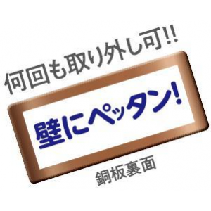 銅板裏面の粘着ラバーで冷蔵庫、蓋付きゴミ箱、靴箱等の側壁面に貼り付けます。