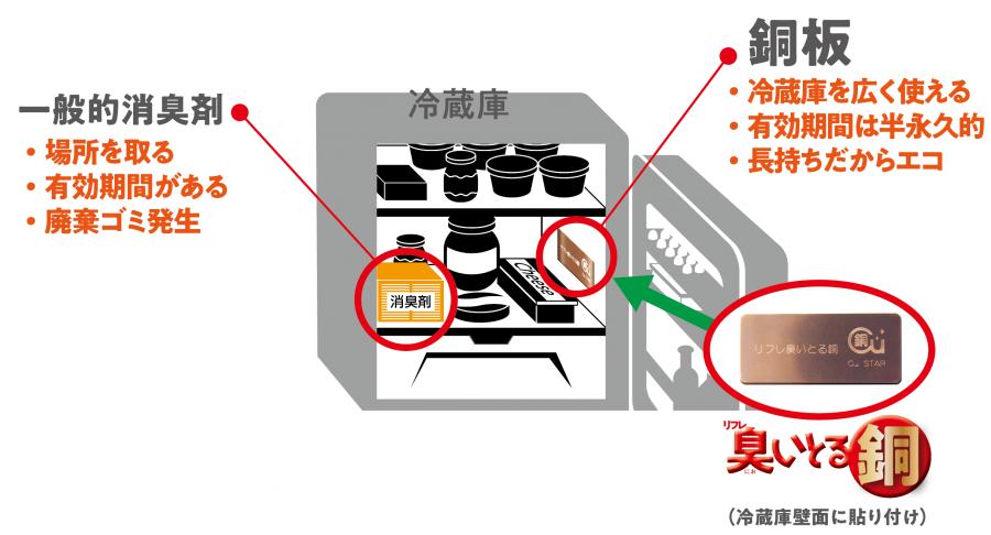 ③ 銅板の持つ抗菌・消臭能力で、冷蔵庫内の悪臭をとる!