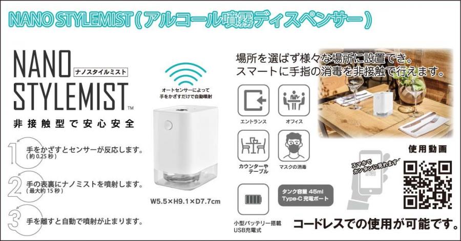 オートセンサーによって手をかざすだけで自動で噴霧。手を離すと噴霧が止まる。