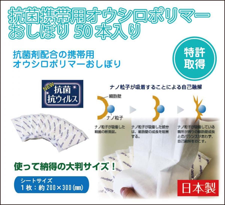抗菌携帯用オウシロポリマーおしぼり50本入り