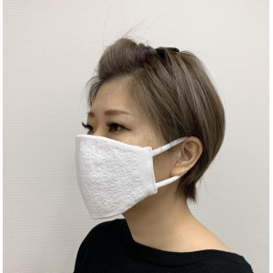 立体織ふわっふわっ美マスク     ウイング柄 ホワイト(大きめサイズ)