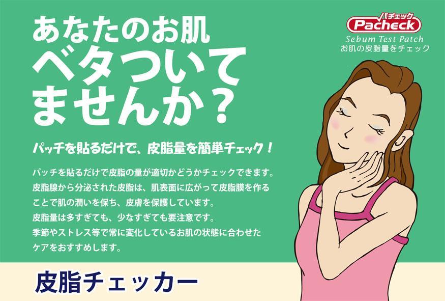 あなたのお肌はべたついていませんか?チェッカーをお肌に5~10分貼るだけで、お肌の皮脂量が適切かチェックできます。