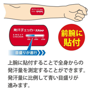腕に貼付することで全身からの発汗量を調べることができます。発汗チェッカー600と比較し、2.5倍の大量発汗を計測できます。