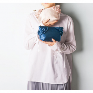名入れ可 フェミニンで華やかなマチありポーチ 2色