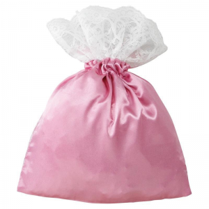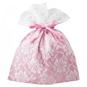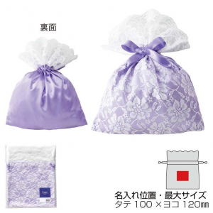 名入れ可 ふんわり柔らかなリボン付きレース巾着