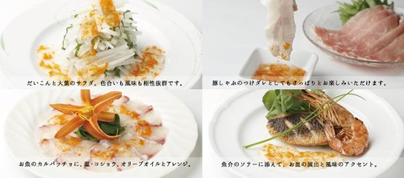 穀物酢、砂糖、食塩、アキノワスレグサ花(クワンソウ花・沖縄県今帰仁村産)、白だし、薄口醤油、パッションフルーツ(沖縄県産)、ゲル化剤(増粘多糖類)、酸化防止剤(V.C、フェルラ酸)、pH調整剤(原材料の一部に大豆・小麦・さばを含む)