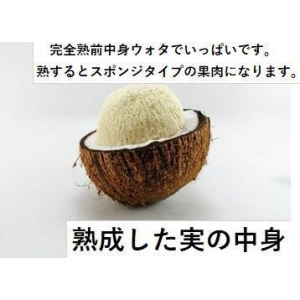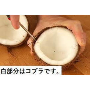堅い殻の内側には果肉や胚乳(はいにゅう)がありその胚乳を乾燥させた物がドライココナッツ(コプラ)です。