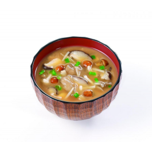 しいたけ、まいたけ、えのき、なめこの4種類のきのこのぷりぷり食感が 楽しめるおみそ汁です。
