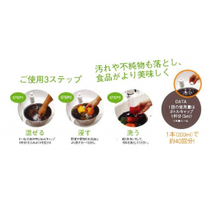 全て見る テキストをコピー 原材料に含まれる天然ハーブエキス(青森ヒバ、オレンジ)、貝殻のカルシウムには抗菌作用があります。 また、ミネラル水(トルマリン、備長炭)とEM発酵物質には還元(抗酸化)作用があります。 この2つの相乗還元(抗酸化)作用により、生鮮食品の鮮度を保ち、汚れや不純物も落とすので食品がより美味しく長持ちします。