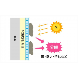 除菌の秘密は新型光触媒。光と反応を起こし、有機物を分解除去。