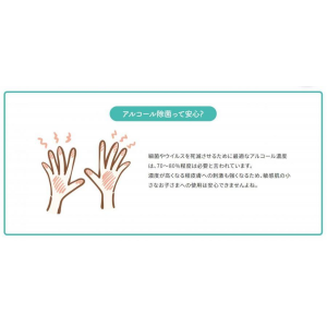 ノンアルコール / 非塩素系の人にやさしい除菌剤です。アルコールで肌荒れを起こしてしまうようなお肌の弱いお子さまにもオススメです。(皮膚刺激試験に合格)