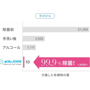 「My JOKIN」は食品添加物に使用されている成分で出来ているため、お年寄りからお子様まで安心してご使用いただけます。ノンアルコール / 非塩素系の人にやさしい除菌剤です。