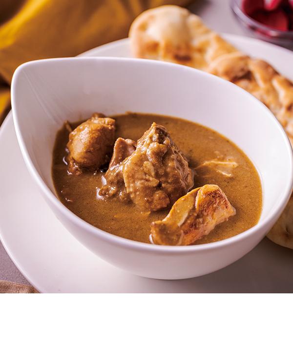 牛骨スープ、牛肉、鯛スープ、小麦粉、玉ねぎ、食用油脂、トマト、無糖練乳、ブイヨン、香辛料、濃口醤油、カレー粉、ウスターソース、チャツネ、ココアパウダー、ガーリックパウダー、ブラックペッパー、食塩 /調味料(アミノ酸等)、甘味料(ステビア、甘草)、シリコーン、(一部に小麦・乳成分・大豆・牛肉・バナナを含む)