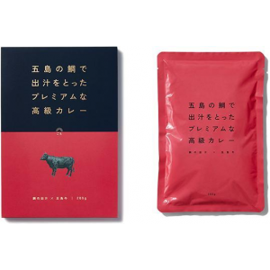 既存商品である「五島の鯛で出汁をとったなんにでもあうカレー」と同じシンプルな構成でありながら、高級感をプラスしたゴールドの文字と素材感のあるイラストが特徴です。
