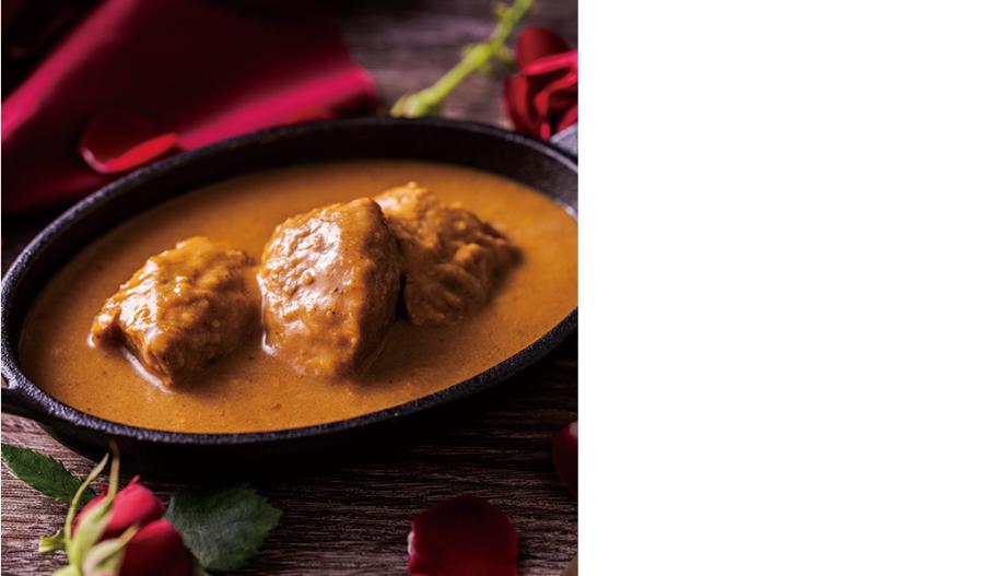 五島のブランド豚「五島SPF美豚」を100gも使用し、赤味噌とバラのハーブをアクセントにしたレトルトとは思えない美味しさのカレー