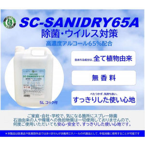 【防災安全協会推奨品】SAFECARE SC-SANIDRY65A アルコール除菌剤 植物性 エタノール65度 5L コック付き