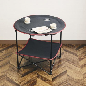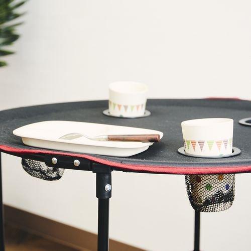 アウトドアに最適な折りたたみテーブル。テーブルに置いても溢れないようにカップホルダーが4個付いているのも嬉しいポイントです。