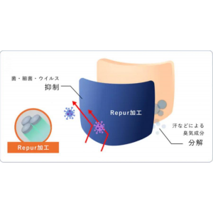 『Repur-P』加工を施し、マスクの生地に薬剤を浸透させる事で、抗菌・制菌・消臭機能を発揮。
