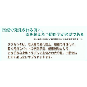 2、プラセンタは薬ではありません。しかしプラセンタを取扱っています動物病院では老犬・老猫に良い結果が出ています。又、プラセンタ研究交流会にて獣医師先生が発表しました症例に有りますように、プラセンタと西洋薬等を併用する事によって更に良い結果が出ています。プラセンタ研究交流会の獣医師先生は、これまでプラセンタを治療に使用した結果、回数よりも量が大事、より濃くより多く、と仰っています。