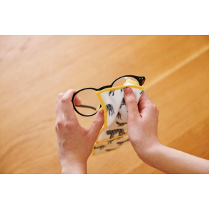 マイクロファイバーのクロスでメガネやスマートフォンの表面汚れをササっとすっきり落とします。