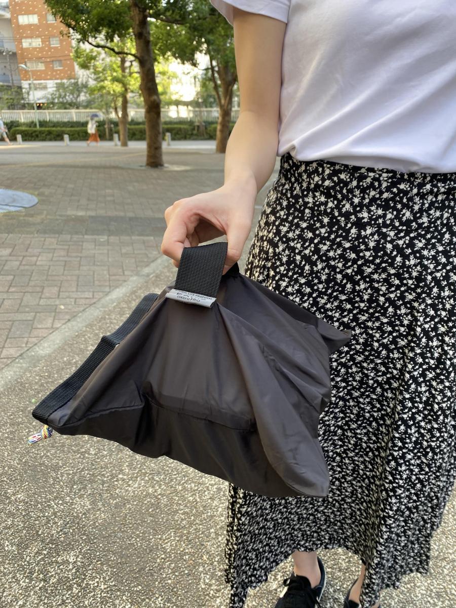 サッと畳めていつでも鞄の中へ収納可能。水平にも垂直にも持てるcバッグ。コンビニ弁当も水平にも運べます。