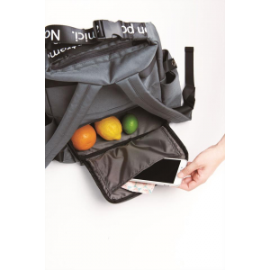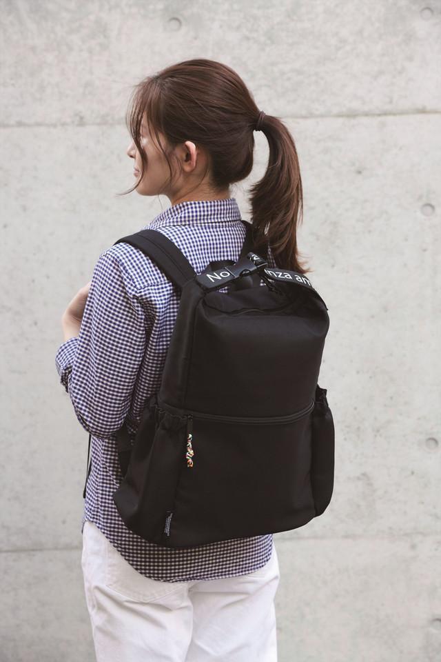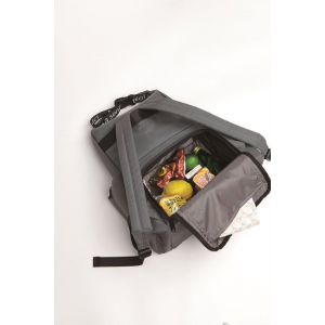 内側はアルミ蒸着フィルムを使用しており保冷保温効果がついています。アクティブに行動したいときはリュックとして、安定感のあるストラップでショルダーとしても使用可能です。