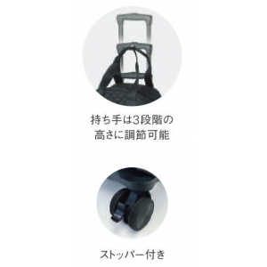 ●SIZE:【バッグ】H390×W310×D170mm 【カート】H540、H750、 H810mmの3段階 ●質量(本体重量):1.5㎏ ●容量(本体容量):22ℓ