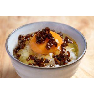 熱々の白いご飯にニラ醤油をかけて、食べた後は卵と