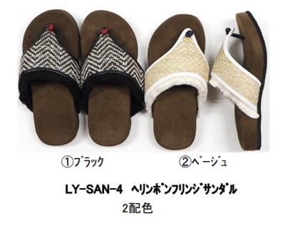 LY-SAN-4 ヘリンボンフリンジサンダル ヘリンボン生地に短めのフリンジが大人っぽい印象のサンダル