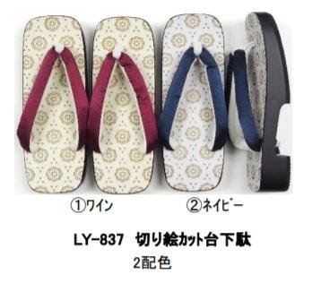 華やかな台にワインとネイビーの鼻緒が映える下駄