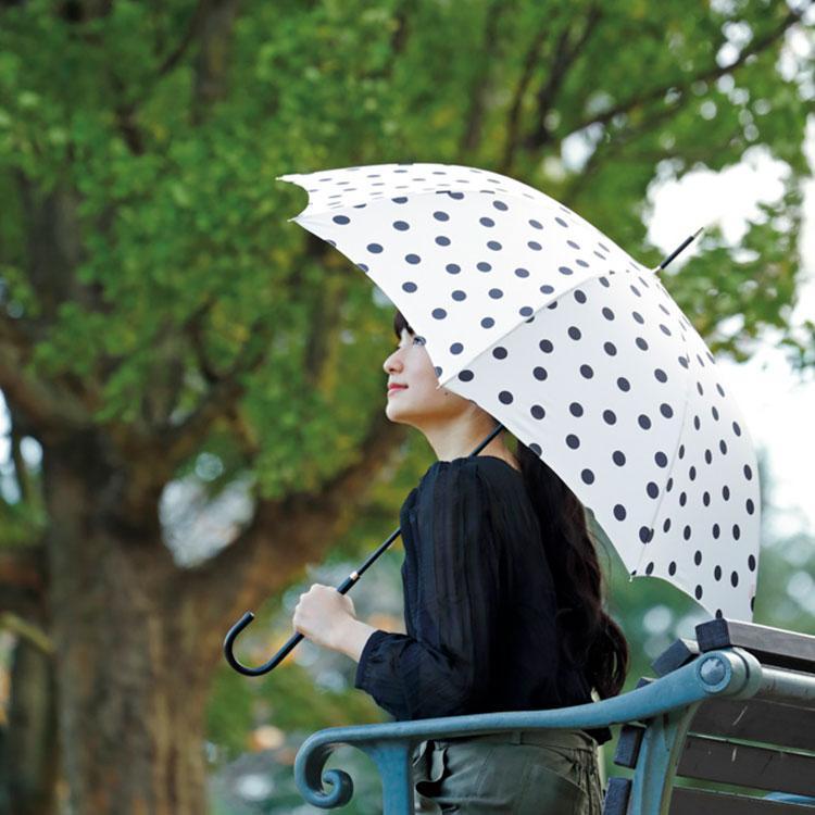 合わせやすい王道カラーのランダムドット。ベーシックなコーデに控えめな甘さをプラス。