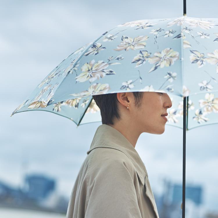 エアリーな花柄が優しい甘さを演出。柔らかなキレイ色をまとえば雨の日も心が弾みそう。