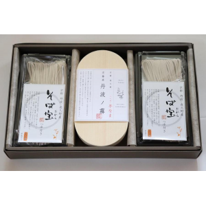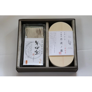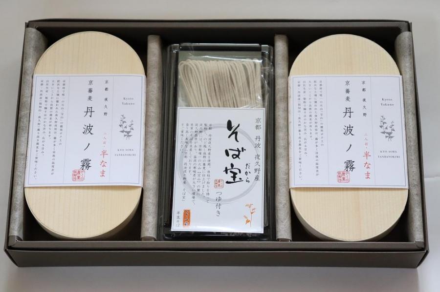 香り高い白地の蕎麦「丹波ノ霧」と力強い味と香りの田舎蕎麦「そば宝」の2種類の麺をセットにしました。